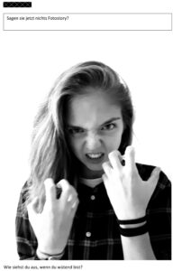 Partneraufgabe: Stellt euch gegenseitig Fragen zum Thema „Wut“ und gestaltet daraus eine Fotostory nach dem Vorbild „Sagen Sie jetzt nichts“ aus dem Magazin der Süddeutschen Zeitung.
