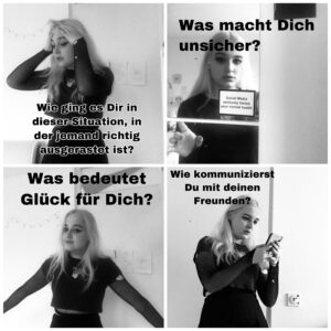 Vor Aufführung im Juli erfolgte noch eine Vertiefungsphase, in der digital über die reine Zoomästhetik hinausgehend zum Thema gearbeitet wurde. Es wurden von den Schülerinnen zu verschiedenen Aspekten und Texten TikTok-Videos mit Lip sync erstellt sowie Musik, Übergänge und Abfolge der Szenen festgelegt.